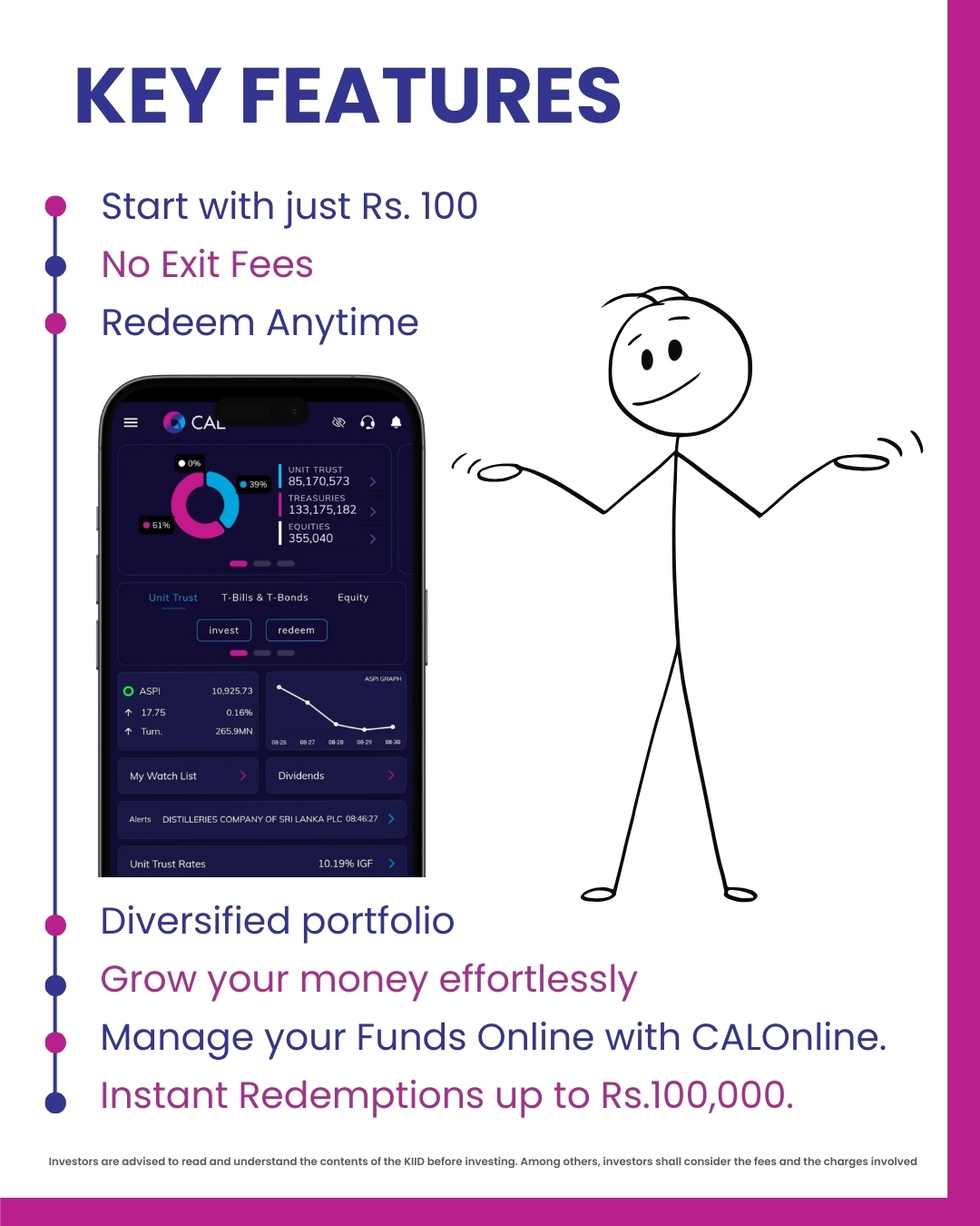 If you’re Sri Lankan and looking to invest, sign up digitally via https://calonline.lk/ or download the CAL Online Mobile App on iOS | Android https://cal.lk/app/ and begin investing seamlessly